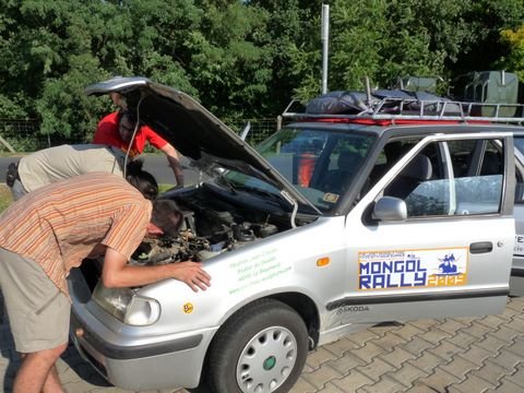 Évidement, il en faut bien plus pour entamer notre moral, en particulier lorsque l'on arrive au point de départ du Mongol Rally et que l'on rencontre (enfin) les autres équipes et leurs véhicules.Bonne nouvelle, les autres équipes sont à peu près autant préparées que nous (ou tout aussi inconscient certains diront). Toute l'excitation et - des mois de préparation (couplée avec un candide optimisme général) est palpable.